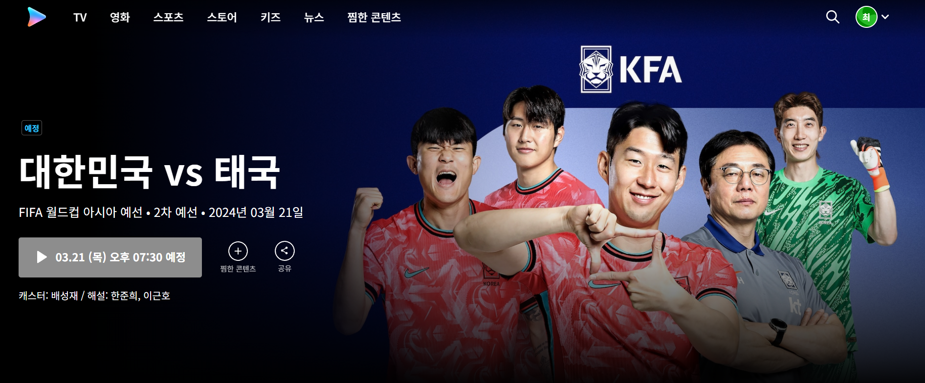 [캐스터 배성재, 해설 한준희, 이근호]