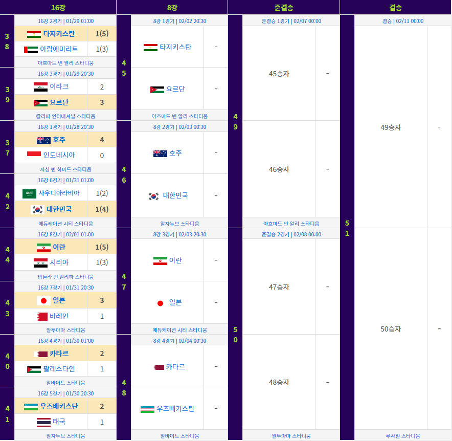 카타르 아시안컵 8강전 일정